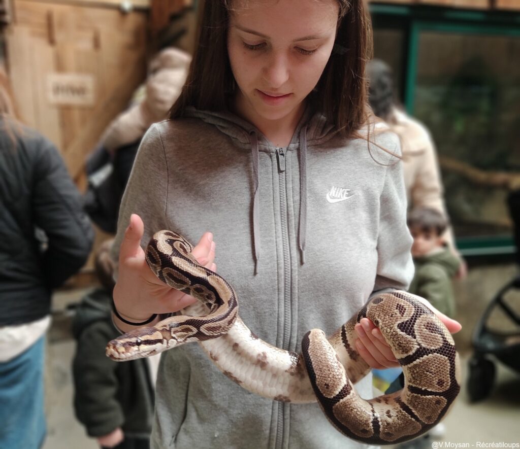 Cette thématique propose une expérience peu commune avec la rencontre avec un python royal, et pas seulement à travers la vitre de son aquarium : la médiatrice nous le présente de très près. Elle nous invite à le toucher pour mieux nous présenter son anatomie, et même à le porter. C’est un moment exceptionnel pour les plus audacieux ! Le tout se fait dans le plus grand respect de l’animal et avec une réelle dimension pédagogique.